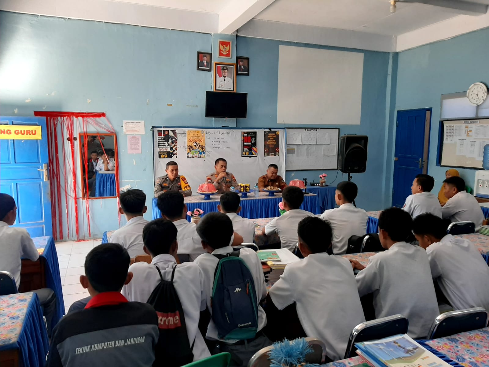 “Kami mengimbau kepada para siswa-siswi serta guru agar berperan aktif untuk bahu membahu dalam menfilter setiap informasi baik dari media TV maupun medsos yang diterima, apalagi dengan maraknya berita bohong (hoax) dan paham radikalisasi, suatu paham agama yang dapat memecah belah persatuan dan kesatuan bangsa.”tambah Kasat Binmas