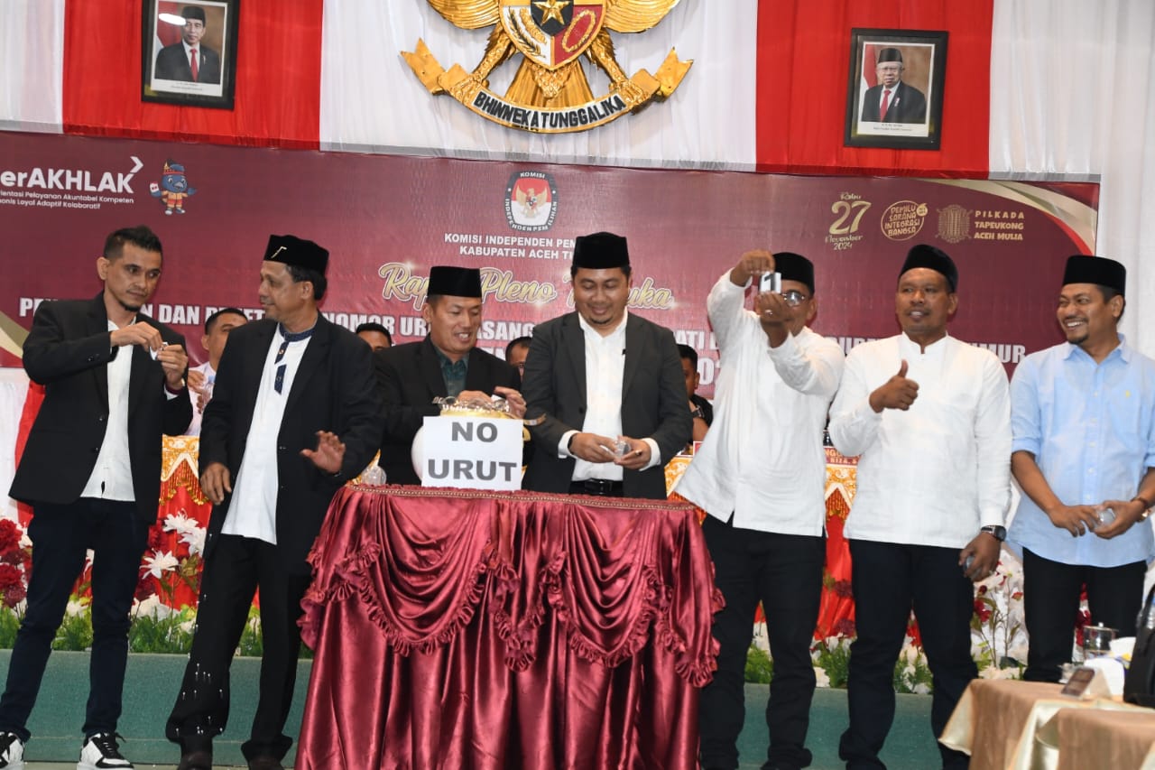 Berdasarkan hasil undian yang digelar oleh Komisi Independen Pemilihan (KIP) Aceh Timur di Aula pendopo Bupati setempat, pasangan H. Sulaiman (Tole) dan Abdul Hamid (Apong) mendapatkan nomor urut 1. dan Ridwan Abu Bakar (Nektu) – Muhammad (Amad Leumbeng) mendapatkan nomor urut 2.