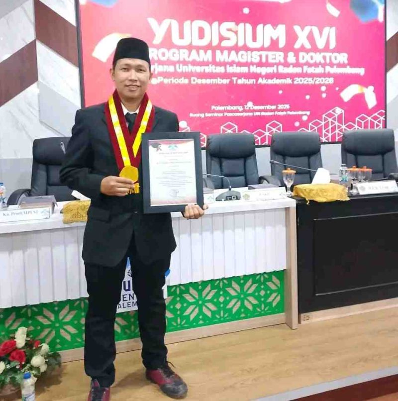 Sriwijayatoday.com, Palembang — Prestasi membanggakan kembali ditorehkan insan pers Sumatera Selatan. Pimpinan Redaksi citrasumsel.com, M. Anasrul Dwi Novriyansah, berhasil mengukir capaian gemilang dengan meraih predikat Lulusan Terbaik Program Studi pada Yudisium XVI Program Magister dan Doktor Pascasarjana UIN Raden Fatah Palembang, periode Desember Tahun Akademik 2025/2026, yang digelar pada Jumat (12/12/2025).