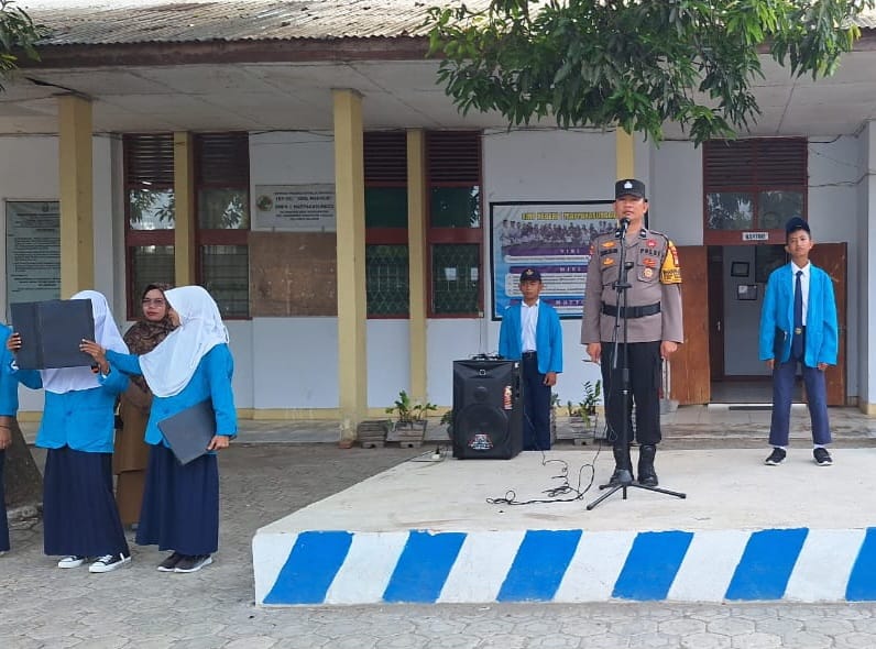 Mapsu, Aipda Zainal Halim Menjadi Irup Upacara Hari Senin di Sekolah SMP Negeri 1 Mapsu, Dusun Kunjung, Desa Banyuanyara, Kecamatan Mapsu, Kabupaten Takalar. Senin, 23/10/2023.