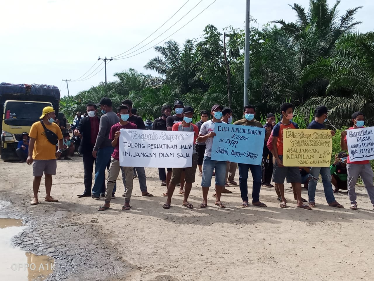 Aksi Turun ke Jalan ini Di Lakukan Karena Masyarakat Dan Pengguna Jalan Sudah Kesal dan Merasa Bosan Dengan Janji-jani Pemerintah Yang Janjinya akan Perbaikan Jalan Tersebut Namun Kenyataan nya Hingga Kini Jalan Semakin Rusak Saja dan Sudah banyak Mobil yang terguling dan pengendara lainnya yang mengalami kerusakan Kendaraannya,begitu pula pengendara sepeda motor yang sudah banyak yang Terjatuh Hal ini Semua Di karenakan Rusaknya Ruas Jalan terhitung Dari Rt 15 dusun Karya Maju Desa Pematang Rahim Sekitar 13km. 31/05/21.