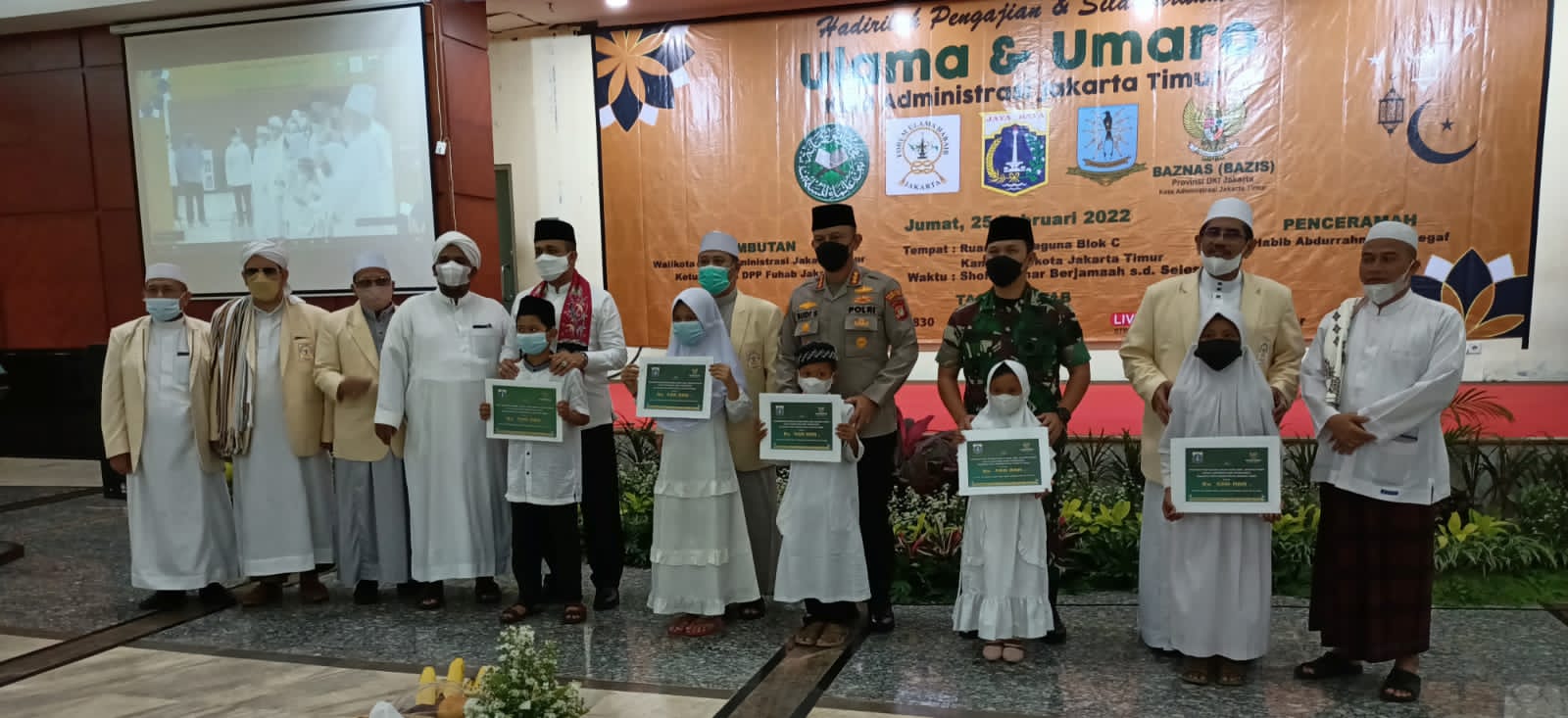 Sriwijayatoday.com Kodam Jaya, Jakarta timur – Dalam rangka menjalin tali silaturahmi antara Satkowil dengan para Ulama dan Umaro, Dandim 0505/JT Kolonel Inf Persada Alam bersama Kapolres Metro Jaktim Kombes Pol Budi Sartono SIK.M.Si dan Walikota Jakarta timur M. Anwar, menghadiri Pengajian dan Silaturahmi Ulama dan Umaro oleh Forum Ulama dan Habaib (FUHAB), giat dihadiri -/+ 100 jamaah, bertempat di Gedung Serbaguna Blok C Kantor Walikota Jaktim, Jumat (25/02/22).