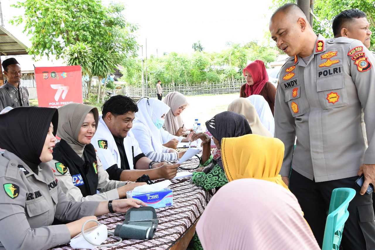 Kapolres Aceh Timur AKBP Andy Rahmansyah, S.I.K. yang turut memantau kegiatan ini mengatakan, ratusan warga mendatangi gerai pengobatan gratis yang melibatkan tenaga kesehatan dari Dinas Kesehatan Kabupaten Aceh Timur dan dokter mitra Polres Aceh Timur.