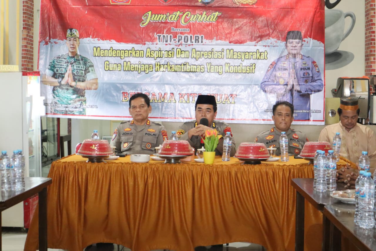 SRIWIJAYATODAY.COM//GOWA-SULSEL, Pada Jumat, 01 Desember 2023, di Kedai Dewi, Ruko Harvest Mansion, Sungguminasa, Kabupaten Gowa, Sulawesi Selatan, digelar acara “Jum’at Curhat Bersama TNI-POLRI”.