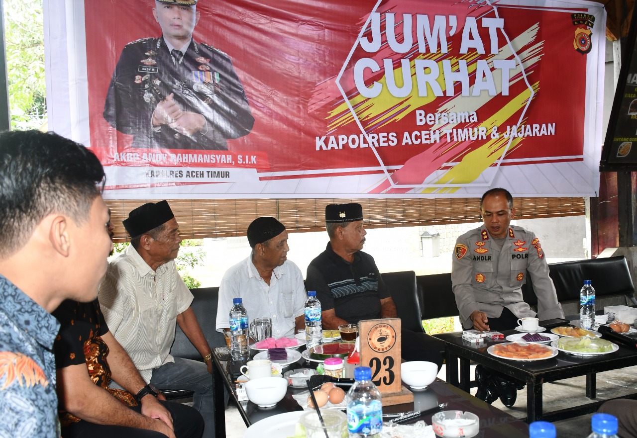 Menurutnya, Program Jum’at Curhat Bersama Kapolres Aceh Timur merupakan program untuk dialog interaktif Kamtibmas dengan warga dalam bentuk penyampaian keluhan, laporan masyarakat, kritik, saran dan masukan untuk Polres Aceh Timur.