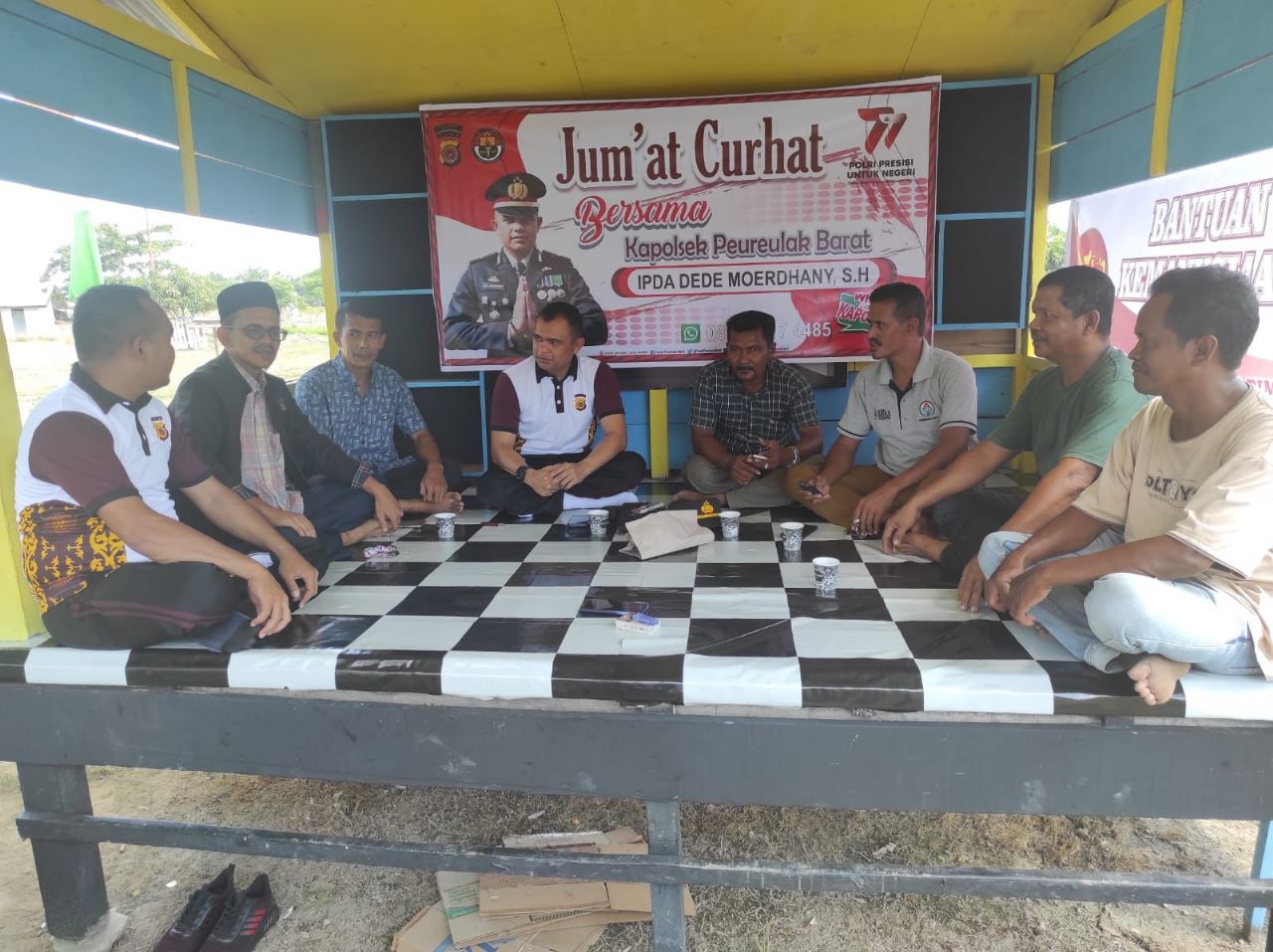 Aceh Timur | Sriwijayatoday.com – Kegiatan Jum’at Curhat merupakan salah satu cara yang dilakukan oleh Kapolsek Peureulak Barat Ipda Dede Moerdhany, S.H. untuk bersilaturahmi sekaligus mendengarkan curhatan warga secara langsung.