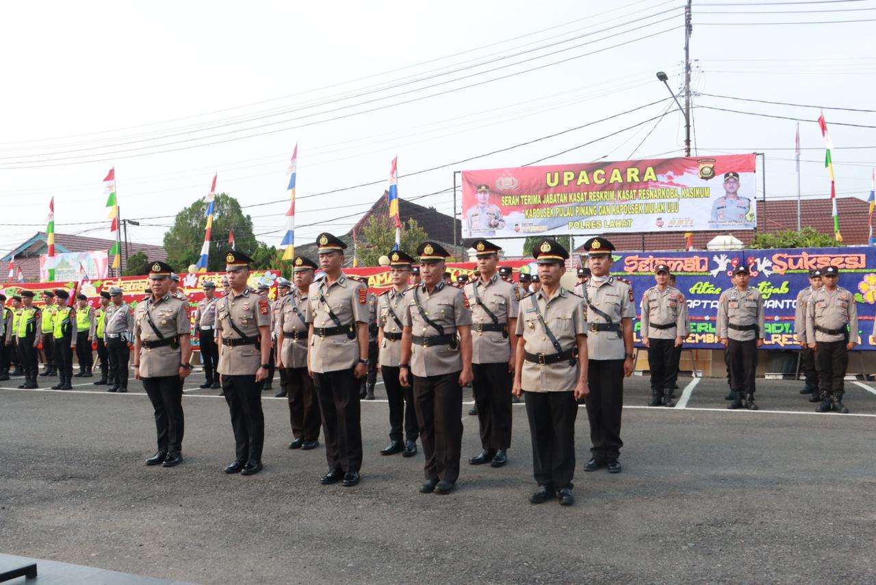 Tiga Pejabat Utama (PJU) yang diserah terimakan jabatannya tersebut ialah, Kasat Narkoba, dari AKP Arpanol Amri, S.H., ke AKP Hairudin, S.H., Kasat Reskrim AKP Sapta Eka Yanto, S.H., M.Si., ke IPTU Ridho Riski Pratama, S.Trk., S.I.K., Kasikum AKP Rahman Edy, S.H., ke IPTU Dauri, Kapolsek Mulak Ulu IPTU Ismail, S.E., M.M., ke IPTU Nurkosim, S.H., Kapolsek Pulau Pinang, IPTU Marliasyah, S.H., ke IPTU Ismail, S.E., M.M.