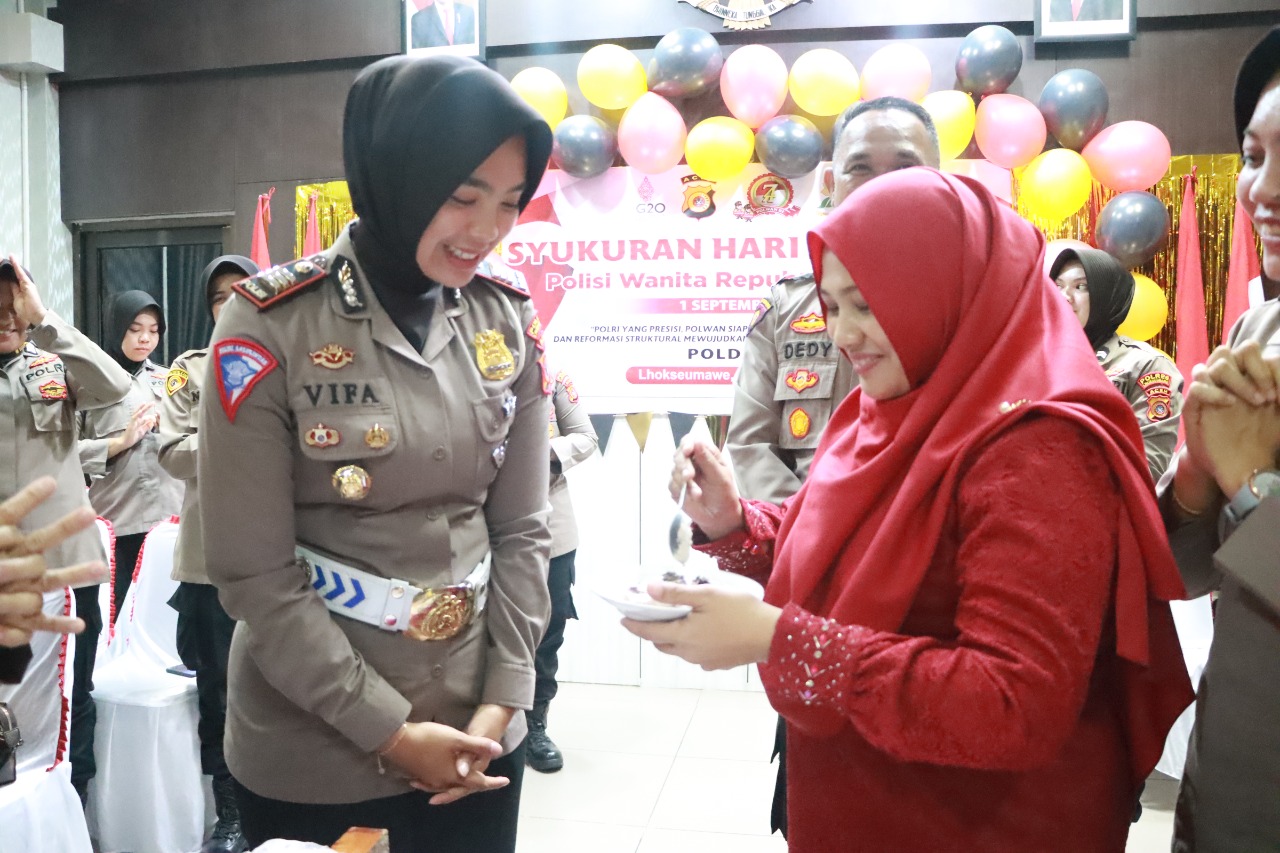 Sriwijayatoday.com | Lhokseumawe – Puluhan Polwan Kepolisian Resor Lhokseumawe mengikuti acara syukuran hari jadi Polwan Ke – 74 tahun 2022 yang berlagsung di Aula Presisi Polres Lhokseumawe, Kamis (8/9/2022) siang.
