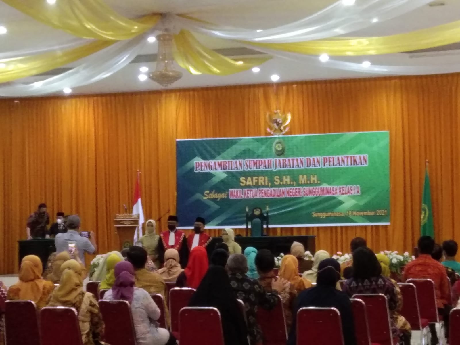 Kegiatan pelantikan Wakil Ketua PN Kelas 1A Sungguminasa Bpk. Safri SH., MH oleh Ketua PN Kelas 1A Agung Sulustiyono SH., M.Hum, dilaksanakan di Gedung D’Bollo Jalan Tumanurung Kel Pandang pandang Kec Somba opu Kab Gowa.