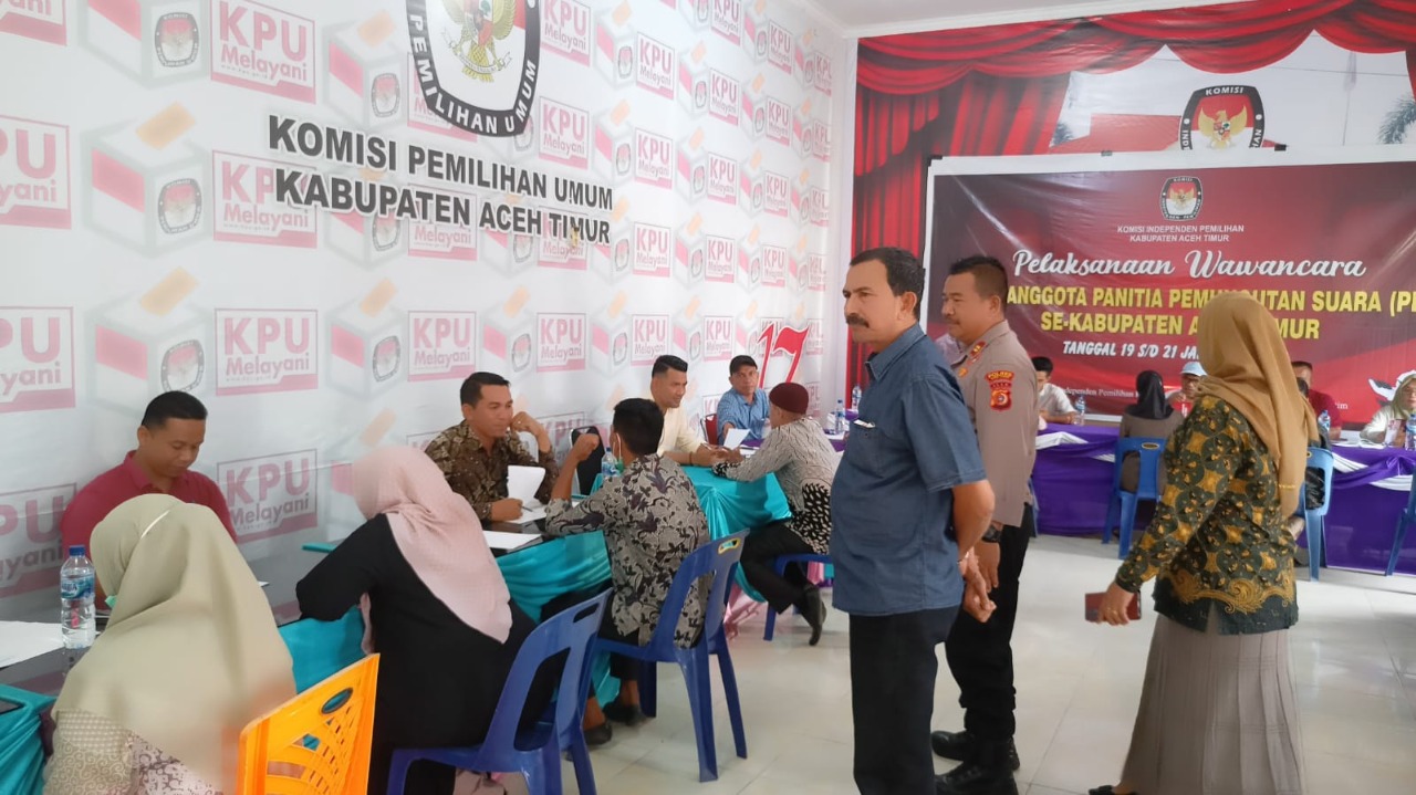 “Kami memantau dan monitoring bersama Ketua KIP Aceh Timur dalam pelaksanaan tes wawancara calon anggota PPS ini agar kegiatan dapat berjalan dengan aman dan tertib sehingga dapat menghasilkan pejuang demokrasi yang berintegritas, sehingga penyelenggaraan Pemilihan Umum (Pemilu) 2024 mendatang berjalan dengan aman lancar dan sukses.” Terang Kapolsek Peureulak Iptu Supriadi.