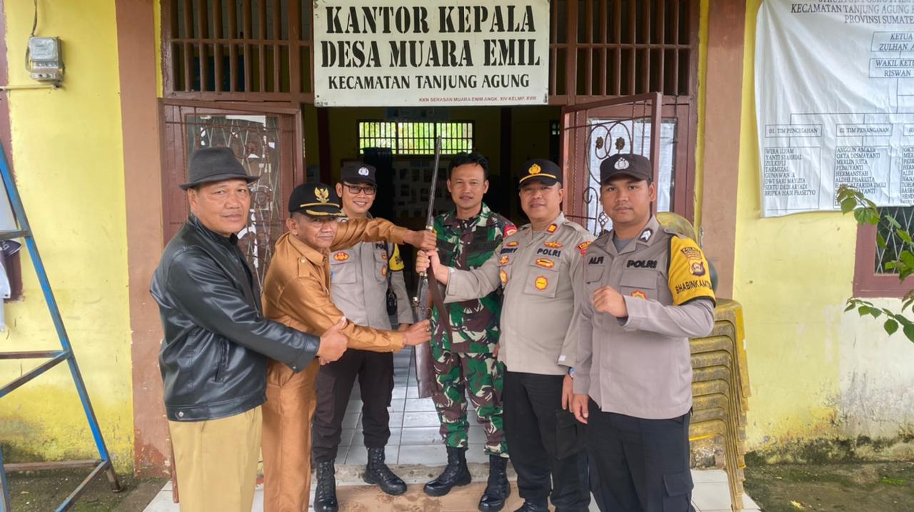 SRIWIJAYATODAY.COM MUARA ENIM SUMSEL – Kapolsek Tanjung Agung didampingi personil BHABINKAMTIBMAS Polsek Tanjung Agung dan BABINSA Muara Emil terima serahan Senpira dari Kepala desa (Kades) Muara Emil.