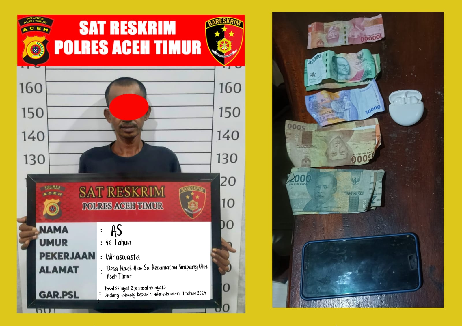 “Untuk pemeriksaan lebih lanjut AS dan barang bukti berupa 1 (satu) unit handphone dan uang tunai Rp. 184 ribu saat ini diamankan di Polres Aceh Timur.