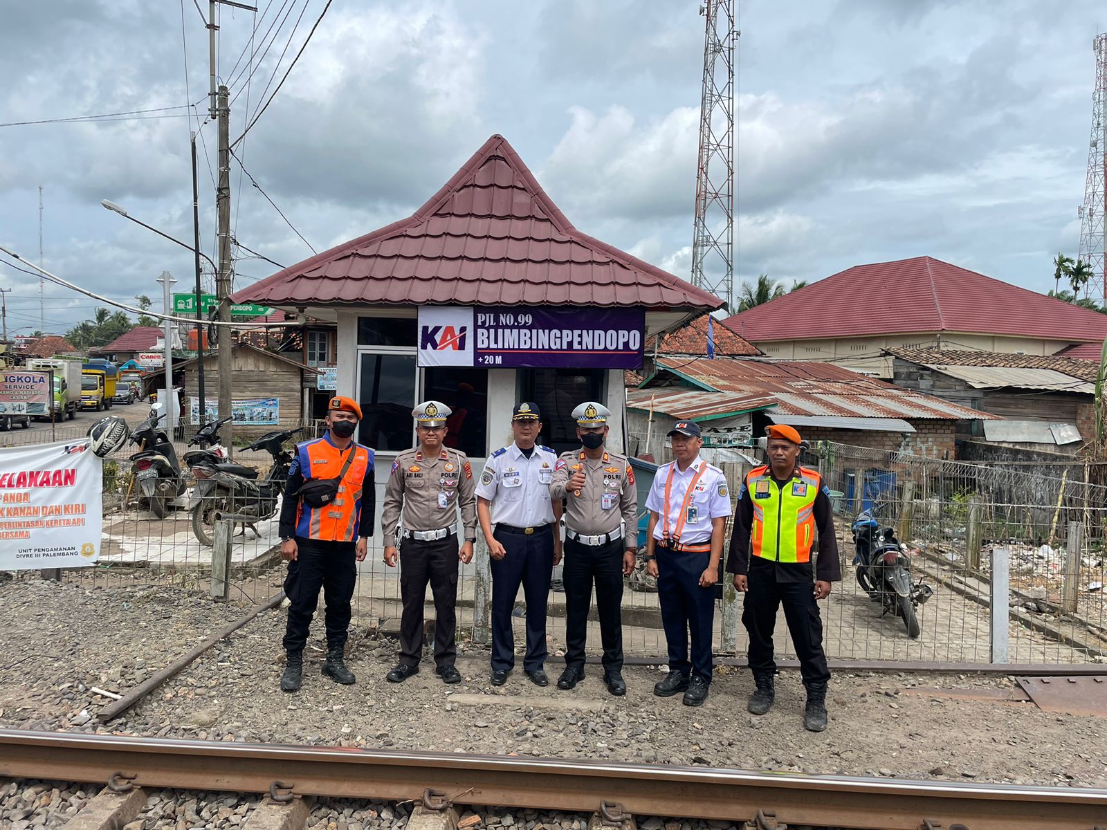 Tadi pagi anggota personil Satlantas Polres Muara Enim bersama Dinas Perhubungan (Dishub) sudah melakukan pengecekan di lokasi area perlintasan rel kereta api desa Cinta Kasih Kecamatan Belimbing Kabupaten Muara Enim. Selasa, 13 Desember 2022.
