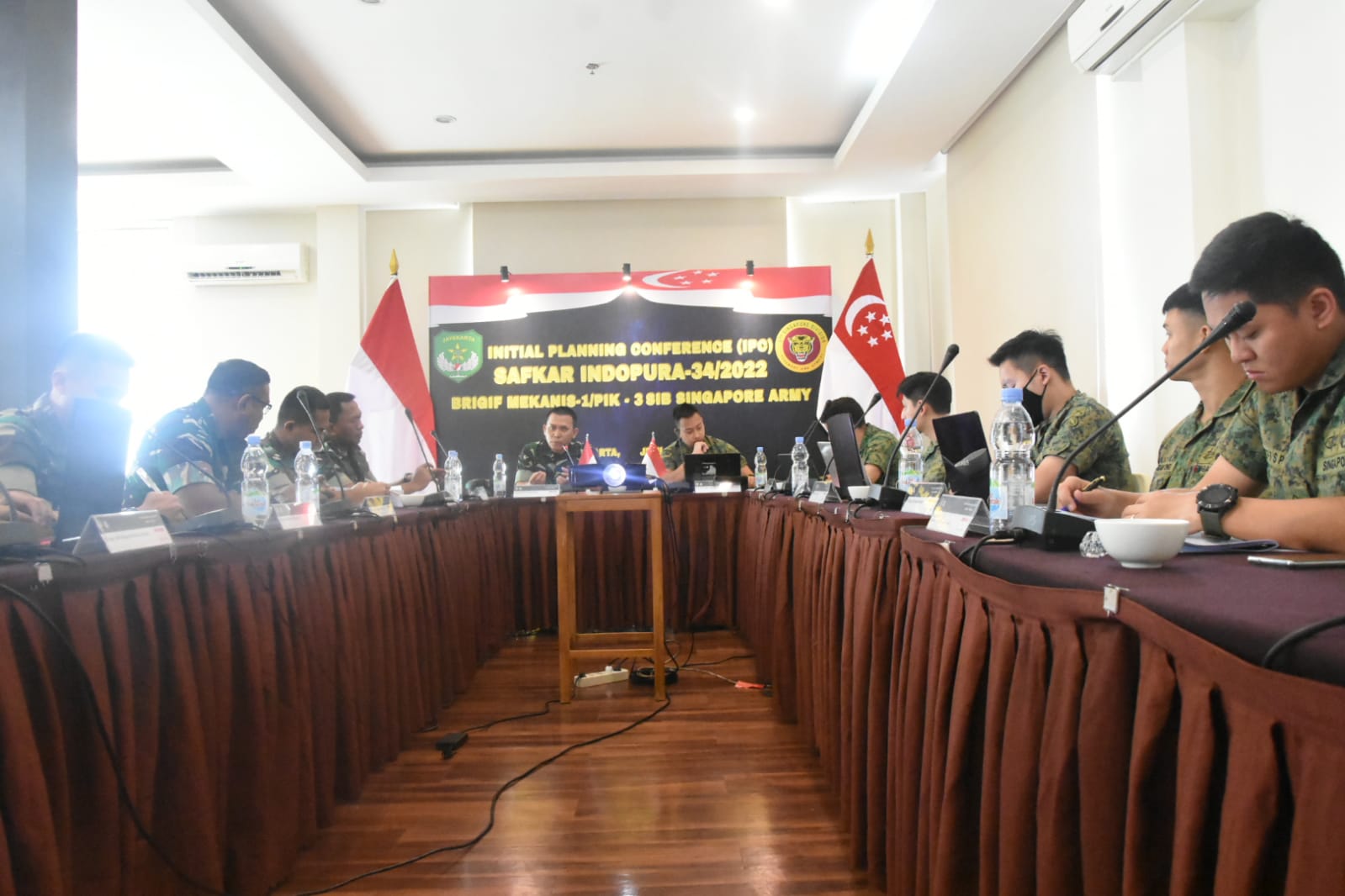 Kegiatan Initial Planning Conference (IPC) Safkar Indopura-34/2022 selama 4 hari (20 sd 23 Juni 2022) antara Delegasi TNI AD dan AD Singapura diselenggarakan di Hotel Santika TMII, Yonmek 202 dan Green Terrace berjalan lancar dan aman.
