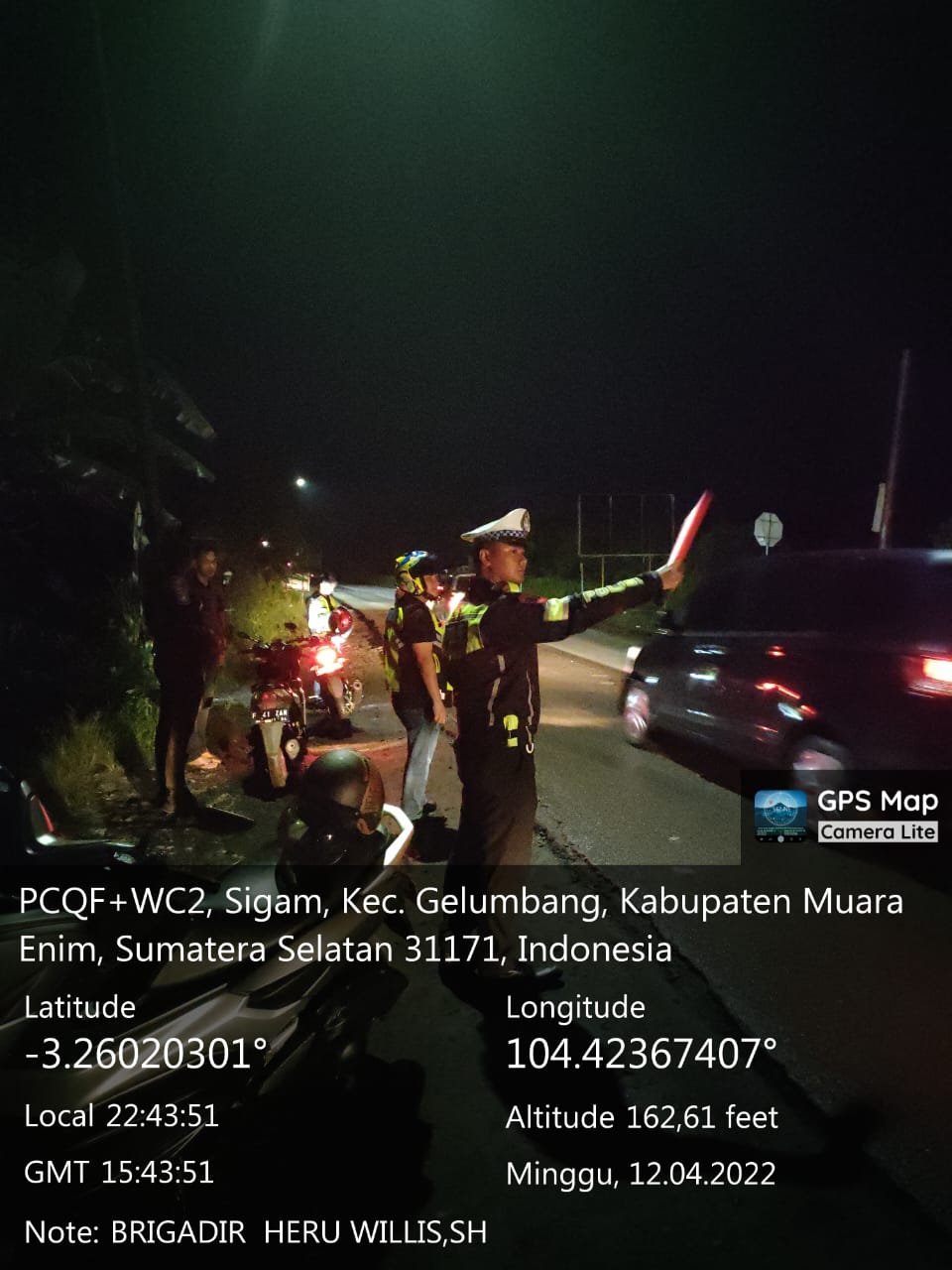 Dikatakannya, Kemacetan terjadi di wilayah Kecamatan Gelumbang Kabupaten Muara Enim. Minggu, 04 Desember 2022 pukul 22.43 WIB, tadi malam. Titik lokasi kemacetan di desa Sigam tidak jauh dari perlintasan rel kereta api. Penyebabnya adanya kendaraan terperosok sehingga membuat macet arus lalu lintas. Ujar Suwandi kepada wartawan. Senin, 05 Desember 2022.