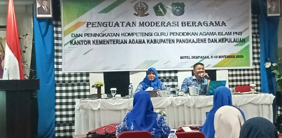 Pangkajene Kepulauan, Sulawesi Selatan – Kementerian Agama Kabupaten Pangkep (Kemenag Pangkep) menggelar kegiatan penguatan moderasi beragama dan peningkatan kompetensi guru Pendidikan Agama Islam (PAI) ASN di Hotel Denpasar, Denpasar, Bali pada tanggal 8-10 November 2024. Kegiatan ini bertujuan untuk meningkatkan kualitas guru PAI dalam memahami dan mengimplementasikan nilai-nilai moderasi beragama serta meningkatkan kompetensi profesional mereka.