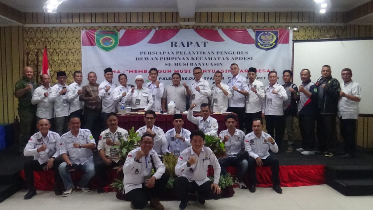 Palembang – Dewan Pimpinan Cabang Asosiasi Pemerintah Desa Seluruh Indonesia ( APDESI) Kabupaten Musi Banyuasin menggelar agenda Konsultasi dan koordinasi Persiapan Pelantikan Dewan Pimpinan Kecamatan APDESI Se Kabupaten Musi Banyuasin yang di hadiri dan di buka langsung oleh Ketua DPD APDESI Provinsi Sumatera Selatan. Ada pun peserta yang hadir pada agenda tersebut Kepala Desa yang mewakili dari 12 Kecamatan yang ada di Kabupaten Musi Banyuasin sejumlah kurang lebih 100 Kepala Desa, dilaksanakan di Hotel Duta Syariah Palembang, hari Rabu Tanggal 20 Maret 2024.