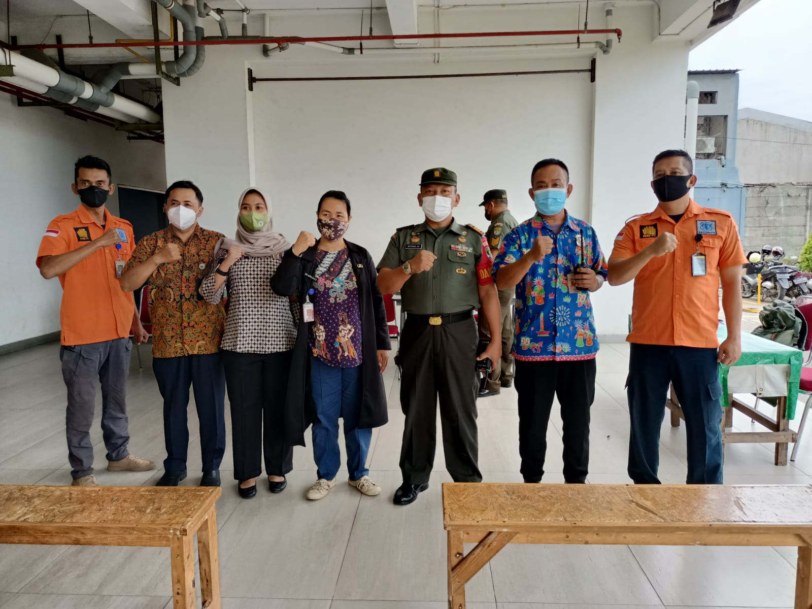 Penyelenggara Koramil 06/Cakung bersama Nakes Polkes Matraman, dibantu oleh tiga pilar, Dasawisma dan Mitra Jaya yang datang ke lokasi tempat vaksinasi dan siap melayani warga Kelurahan Penggilingan untuk divaksin.