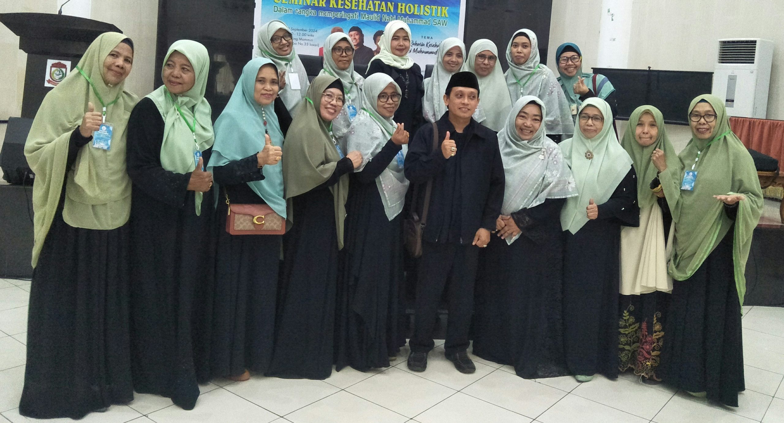 Dalam rangka Seminar Kesehatan Holistik Tema Kehidupan Nabi Muhammad sallallahu alaihi wasallam,ini di rangkai kan Maulid Nabi Muhammad SAW