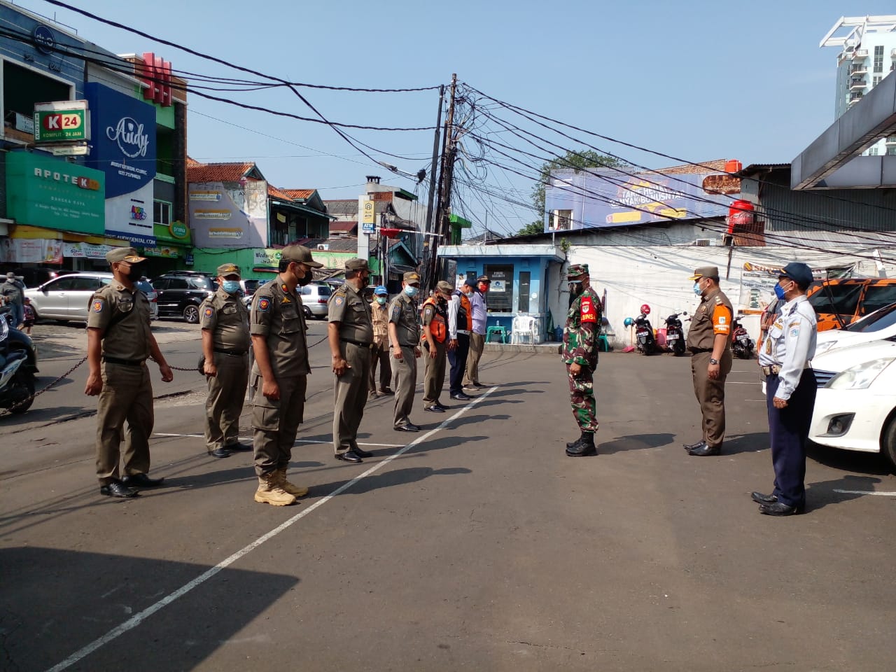 Sriwijayatoday.com Kodam Jaya, Jakarta Selatan – Guna mencegah penularan dan penyebaran Covid-19 dan Penerapan Pembatasan Kegiatan Masyarakat (PPKM), petugas gabungan dari Koramil 02/Mampang Prapatan bersama Polsek dan Sat Pol PP melaksanakan Operasi Yustisi penegakan hukum dan pendisiplinan protokol kesehatan di Jalan Bangka Raya (depan CFC), Kel. Pela Mampang, Kec. Mampang Prapatan, Jakarta Selatan. Senin (10/5/2021)