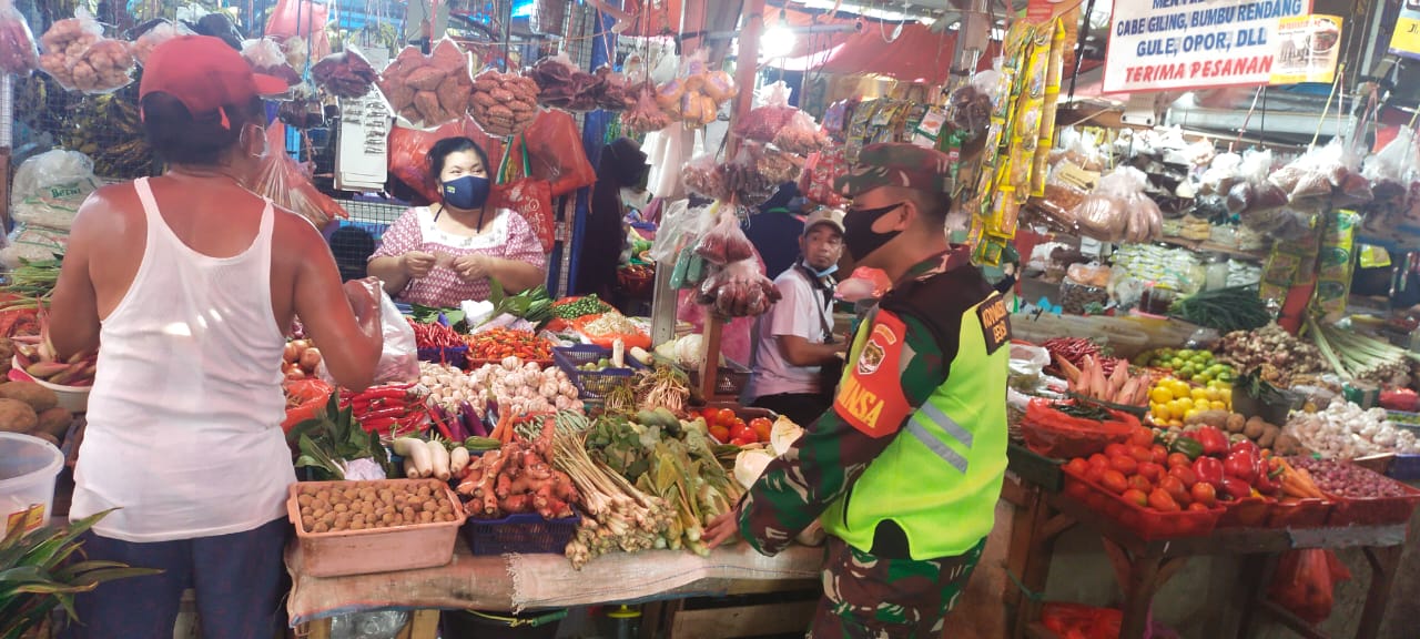 Koramil 04/Jatiasih Berikan Imbauan Prokes Di Pasar Jatiasih