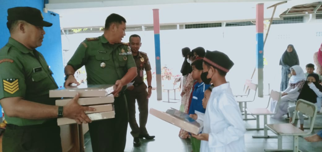 Penyaluran bantuan alat tulis sekolah dari TNI AD dan Yayasan Benih Baik oleh Danramil Cakung Kapten Inf Supriyatno, yang diberikan langsung kepada (33) tiga puluh tiga Anak Yatim-piatu di Wilayah Kelurahan Penggilingan.