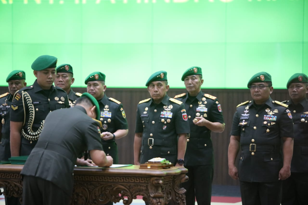 Ketujuh jabatan yang diserahterimakan yakni jabatan Danpusterad dari Letjen TNI Teguh Arief Indratmoko kepada Mayjen TNI Teguh Muji Angkasa, Pangdam II/Swj dari Mayjen TNI Agus Suhardi kepada Mayjen TNI Hilman Hadi, Pangdam XIV/Hsn dari Mayjen TNI Andi Muhammad kepada Mayjen TNI Totok Imam Santoso, Pangdam XVII/Cen dari Mayjen TNI Teguh Muji Angkasa kepada Mayjen TNI Muhammad Saleh Mustafa.
