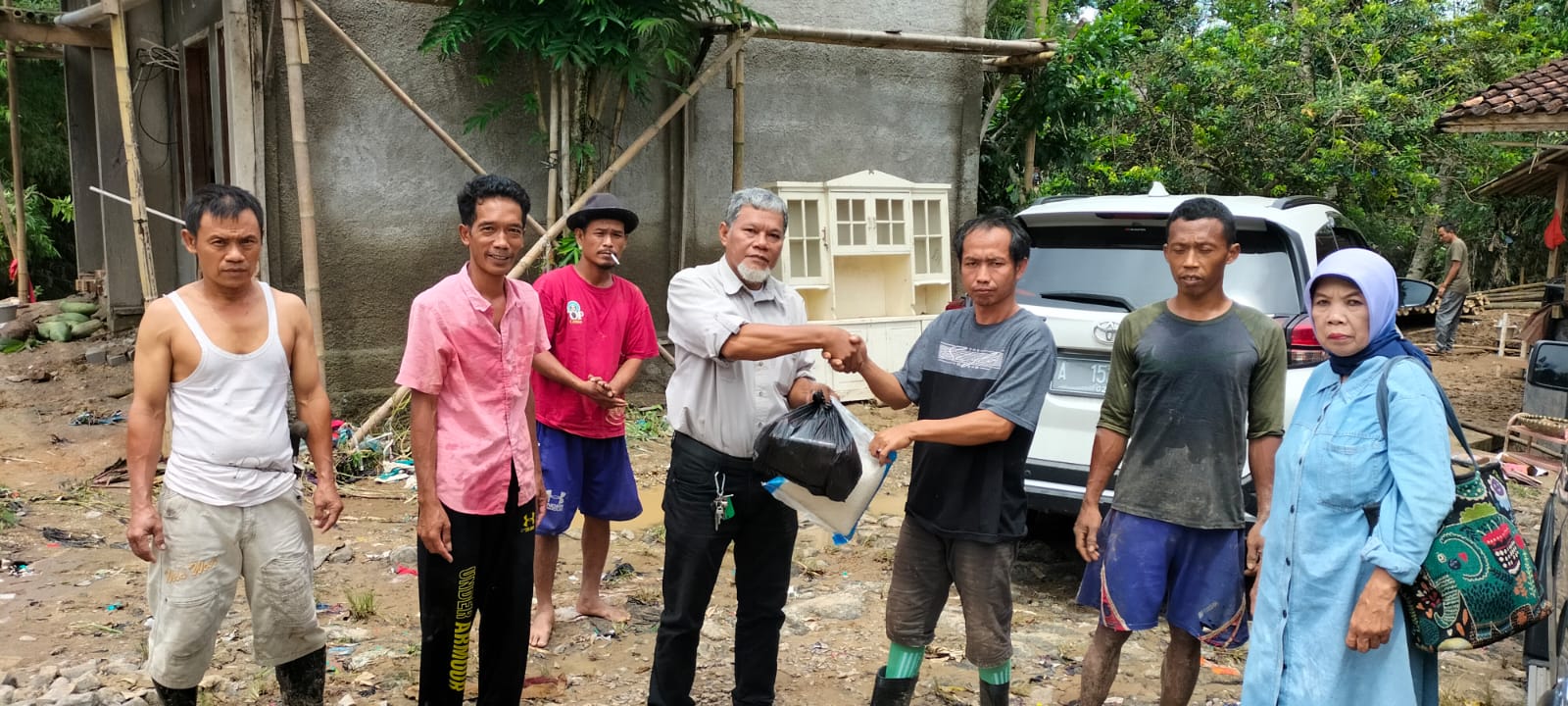 Ketua DPD KWRI Banten berkunjung kelokasi didampingi, Sudrajat, Wakil Sekretaris DPD KWRI Provinsi Banten dan sejumlah pengurus, disambut warga korban terdampak yang siang hari itu tengah bergotong royong membersihkan lumpur, puing dan sampah di sekitar rumah dan jalan.