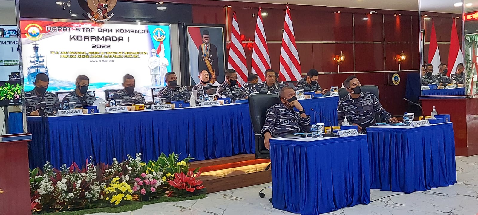Rasko Koarmada I dengan tema “ TNI AL yang Professional, Modern dan Tangguh Siap Mendukung Upaya Pemulihan Ekonomi Nasional dan Reformasi Struktural” dimasa pandemi Covid-19 dilaksanakan secara virtual dengan tetap memperhatikan protokol kesehatan yang diikuti oleh Guspurla Koarmada I, Guskamla Koarmada I, Lantamal dibawah Jajaran Koarmada I, dan Para Asisten Pangkoarmada I, serta Para Komandan Lanal di jajaran Koarmada I.