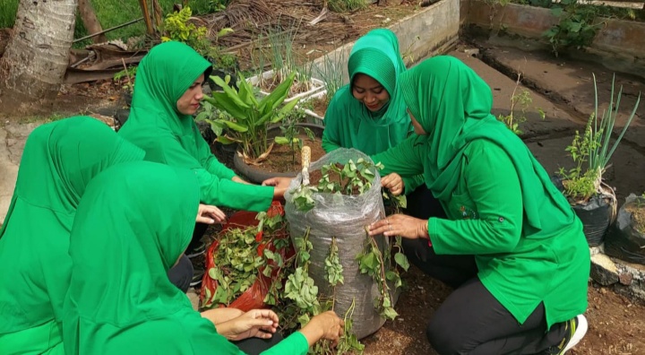 Manfaatkan Media Karung : Persit Ranting 15 Koramil 0602-14/Pabuaran Taman Ubi Jalar