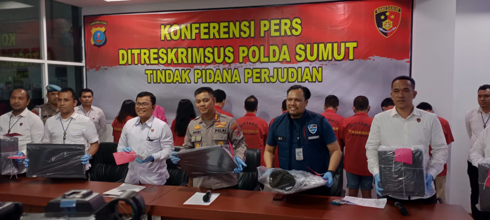 Kabid Humas Polda Sumut Kombes Hadi Wahyudi didampingi Ditreskrimsus Kombes Teddy J Marbun dan Kasubdit Cyber Crime Kompol Welman Feri S.I.K.,M.I.K kepada wartawan mengatakan, pengungkapan perjudian online itu berdasarkan laporan masyarakat.