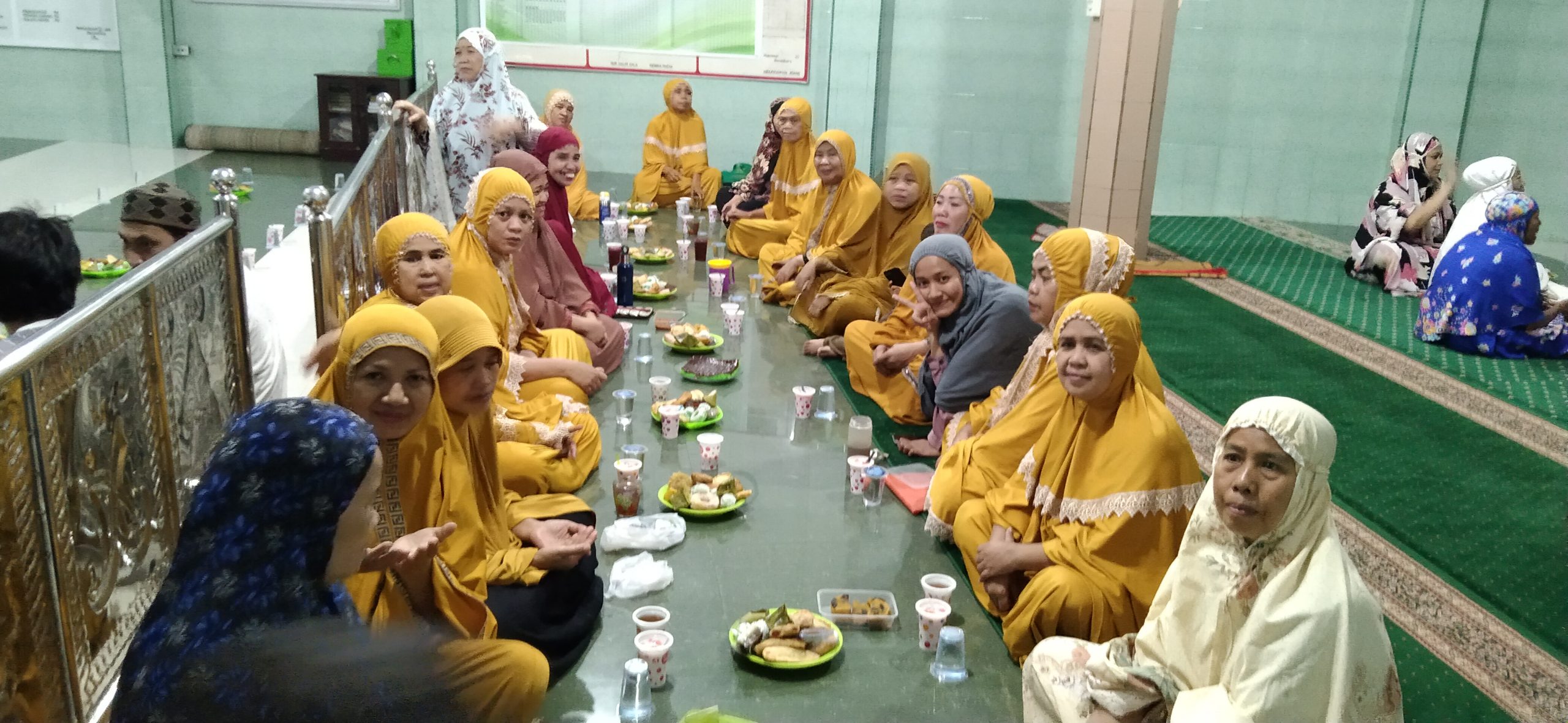Menjelang buka puasa dihadapan para jamaah yang menanti waktu Maghrib tampak aneka kue kue, gorengan, es buah serta teh hangat, semua itu berkat kerja sama ibu ibu majelis taklim masjid Ilham.