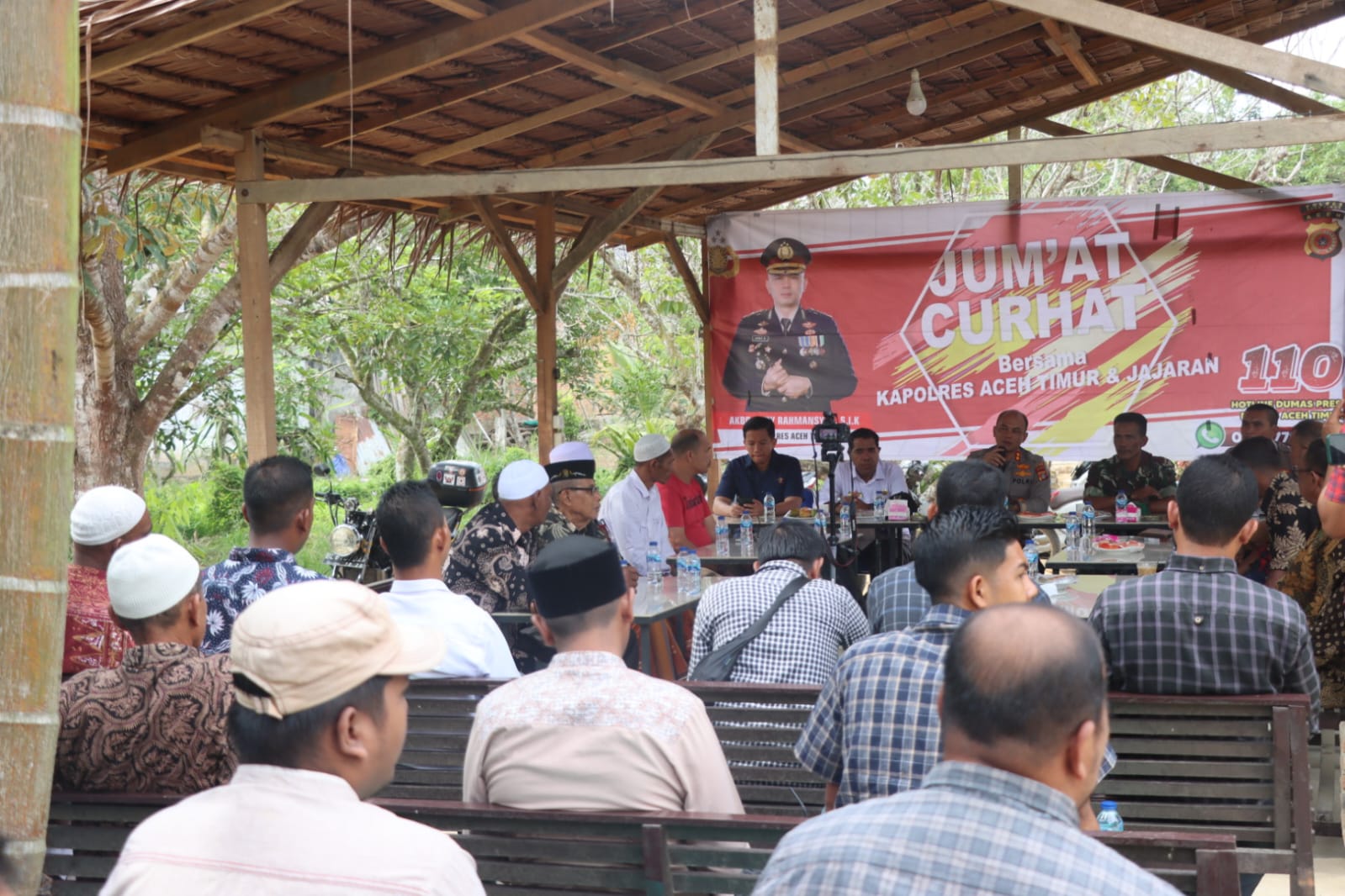 Jumat Curhat merupakan kegiatan safari Kapolres Aceh Timur yang digelar rutin setiap hari Jumat dan dilaksanakan secara bergilir untuk mendengarkan permasalahan permasalahan yang terjadi di tengah masyarakat.