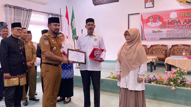 Aceh Timur, Sriwijayatoday.com | MIN 1 Aceh Timur berhasil meraih Juara Sekolah Literasi Jenjang SD/MI dalam ajang MPA Award Tahun 2025 yang diselenggarakan oleh Majelis Pendidikan Aceh (MPA) Kabupaten Aceh Timur. Penghargaan ini diserahkan langsung oleh Bupati Aceh Timur, Iskandar Usman Al-Farlaky, di Aula Serbaguna Idi pada Selasa (11/11/2025).