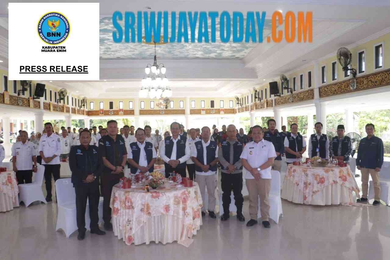 Kegiatan ini turut dihadiri Bupati Muara Enim, Kepala BNN Provinsi Sumsel, Forkopimda, Kepala OPD, camat, lurah, hingga forum kepala desa.(Nde)