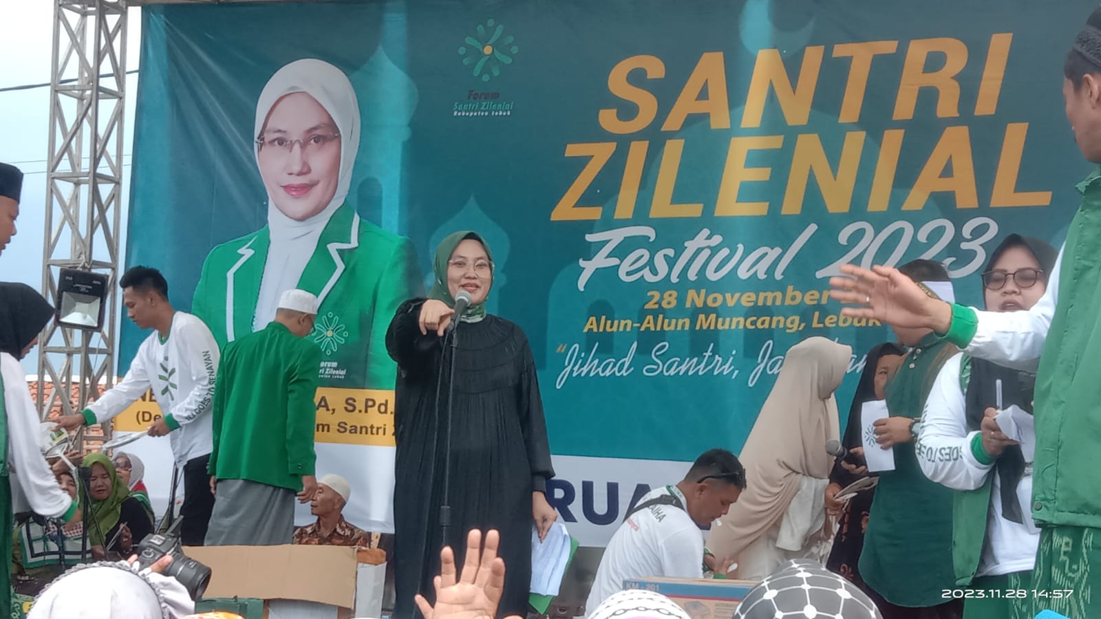 LEBAK- Sriwijayatoday.com Bertepatan hari santri , Caleg DPR-RI Neng Siti Julaeha dapil Banten hadir pada 28 November 2023, di lapangan kecamatan Muncang.