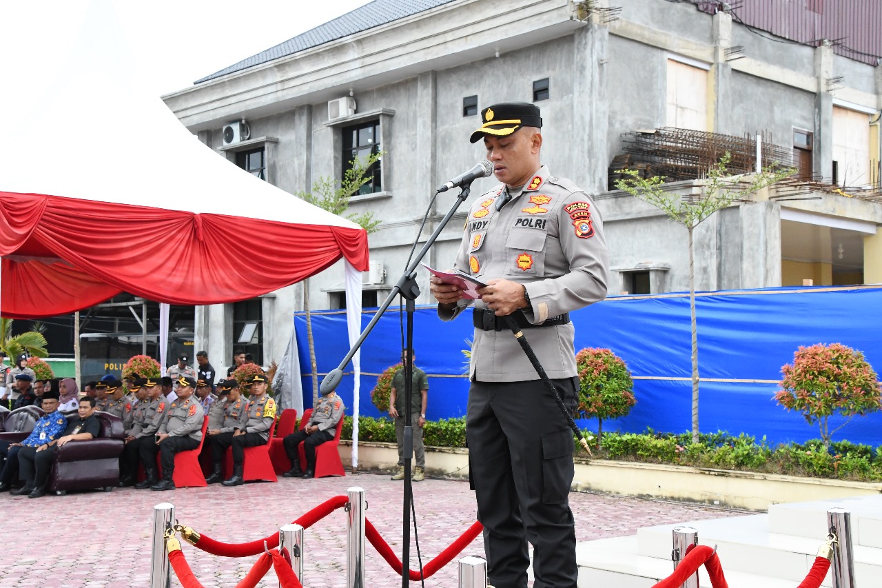 ACEH TIMUR — Polres Aceh Timur melaksanakan Apel Gelar Pasukan Operasi Mantap Brata Seulawah 2023 yang berlangsung di Lapangan Apel Sarja Arya Racana dan dipimpin langsung oleh Kapolres Aceh Timur AKBP Andy Rahmansyah, S.I.K.,S.H.,M.H. Selasa (17/10/2023) pagi.
