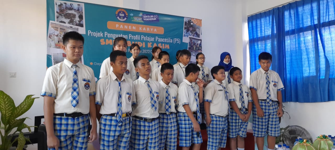 SRIWIJAYATODAY.COM // MAKASSAR-SULSEL Dalam rangka meningkatkan kreatifitas peserta didik dilingkungan sekolah diluar dari pada mata pelajaran utama, maka pihak sekolah khususnya SMPS Budi Kasih selaku penyelenggara pendidikan membuat suatu kegiatan yang mana sifatnya melatih para siswa dalam berkreasi dengan harapan bisa mencetak generasi mudah yang berkarakter dan berkualitas kedepannya. Maka melalui kegiatan Projek Penguatan Profil Pelajar Pancasila (P5) diharapkan tujuan tersebut bisa tercapai, dan puncak kegiatan tersebut diprasentasekan dihadapan para guru serta pihak pihak yang berkompoten dengan nama Panen Karya oleh SMPS Budi Kasih yang berada dijalan gunung salahutu 2 kelurahan maradekaya utara kecamatan Makassar, Rabu (21/12/22)