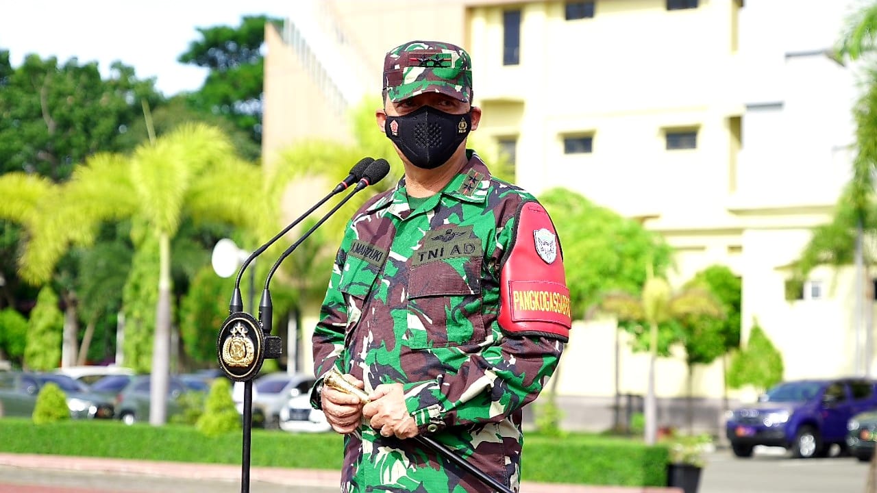 Untuk diketahui, selama prosesi kegiatan apel gelar pasukan tersebut tetap menerapkan protokol kesehatan secara ketat. (Dispenad)