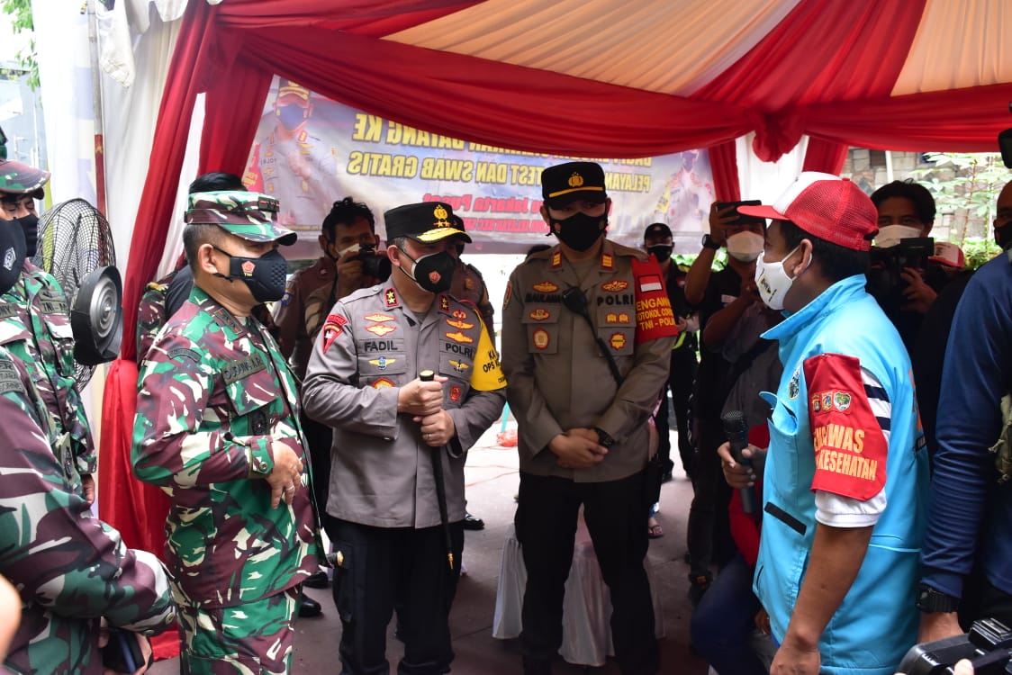 Peninjauan Pangdam Jaya dan Kapolda Metro Jaya didampingi oleh Pejabat Utama (PJU) Kodam Jaya dan PJU Polda Metro Jaya ini selain mengantisipasi meningkatnya jumlah masyarakat yang terpapar Covid-19 karena arus balik mudik Idul Fitri 1442 H juga memberikan semangat kepada para petugas yang ada di Posko Kampung Tangguh Jaya.