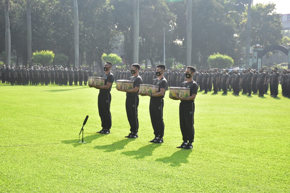 Sriwijayatoday.com Kodam Jaya-Cililitan, Pangdam Jaya Mayjen TNI Dudung Abdurachman, S.E., M.M., memimpin Apel Bersama dan menyerahkan Bingkisan Hari Raya Idul Fitri 1442 H kepada perwakilan personel Kodam Jaya, bertempat di Lapangan Jayakarta Makodam Jaya-Cililitan, Senin (10/5/2021)