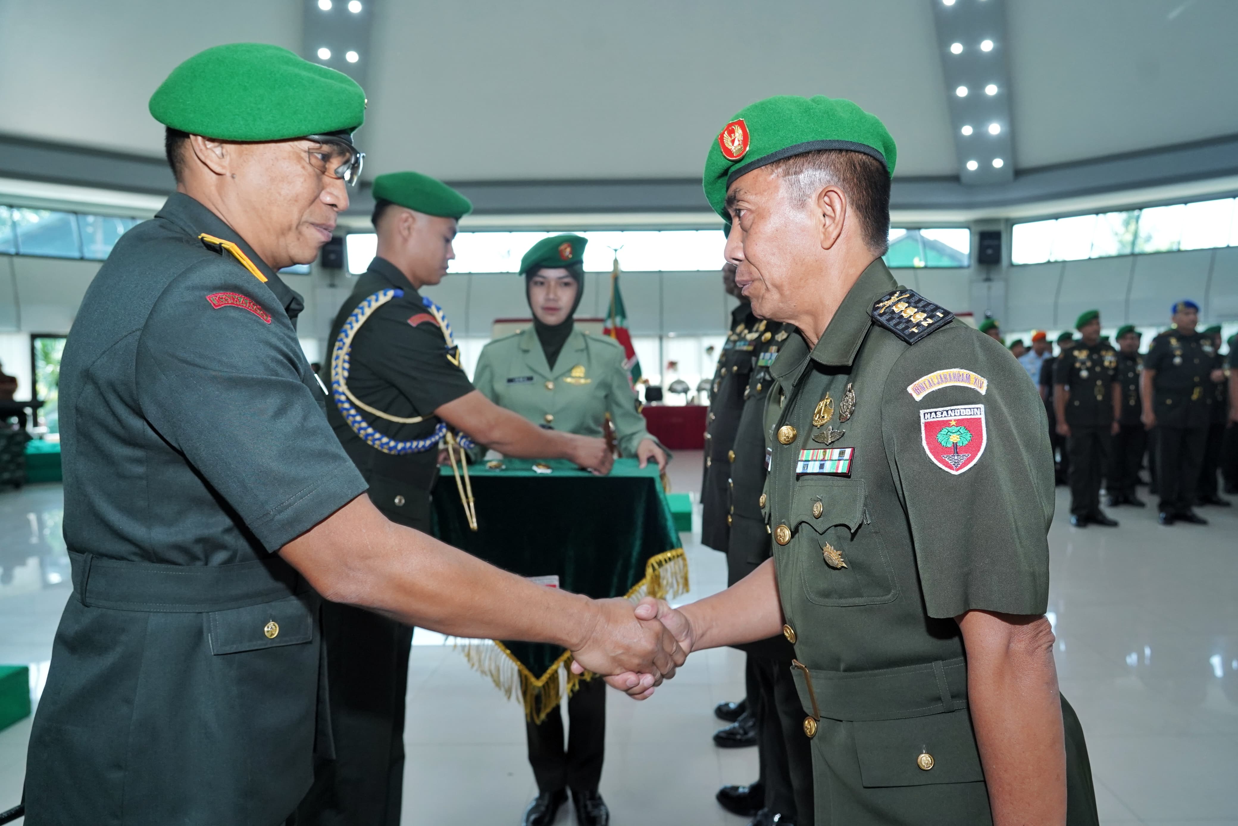 Sertijab dan Penyerahan Tugas ini berlangsung khidmat dan penuh makna, dihadiri oleh para pejabat utama Kodam XIV/Hasanuddin, Komandan Satuan (Dansat) jajaran, serta Ketua dan pengurus Persit Kartika Chandra Kirana PD XIV/Hasanuddin.