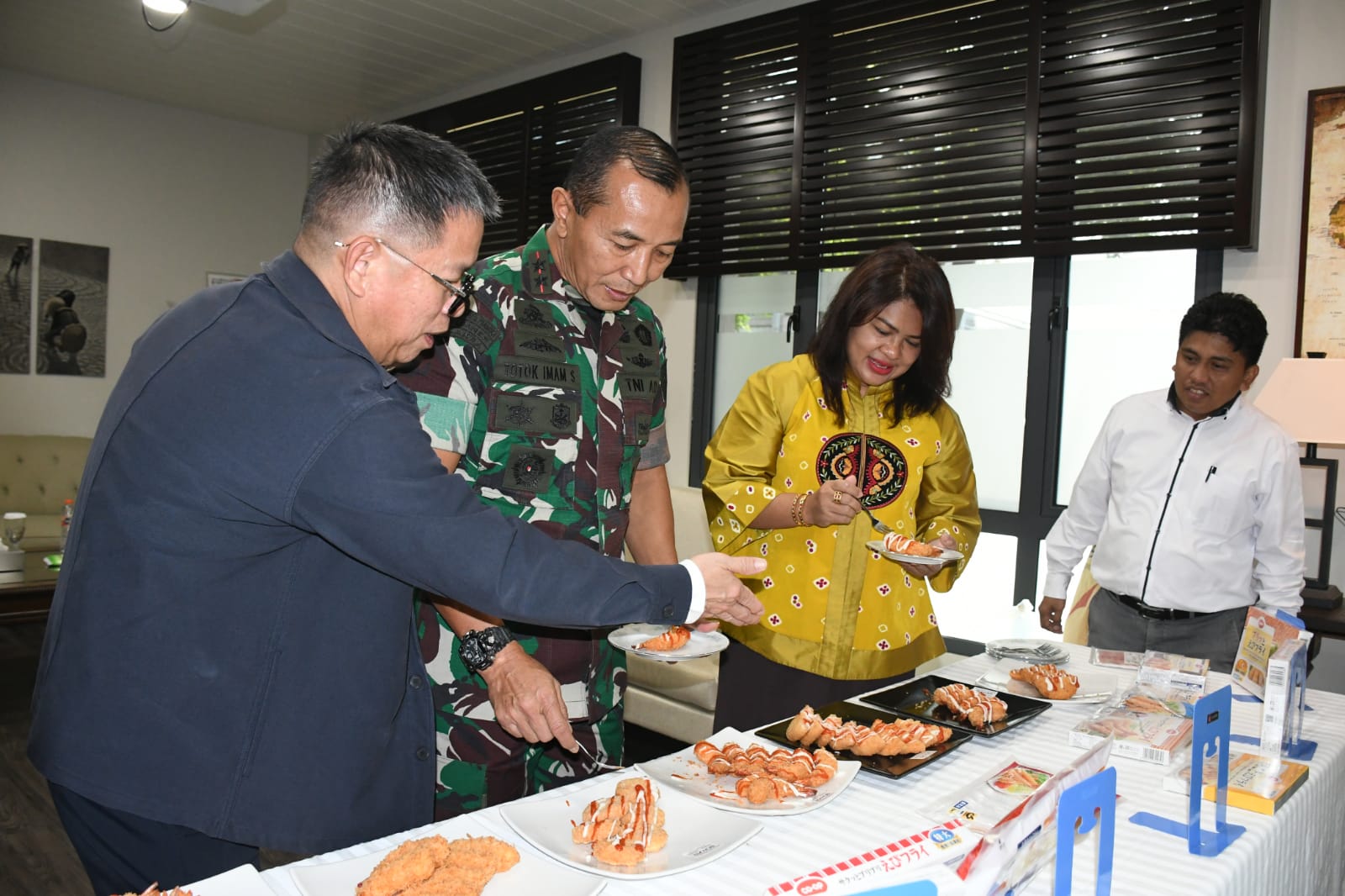 Dengan suasana kegembiraan, dalam kesempatan tersebut Pangdam beserta rombongan juga disajikan berbagai jenis olahan makanan udang PT. Bomar yang memanfaatkan teknologi terbaru dalam setiap proses produksinya.