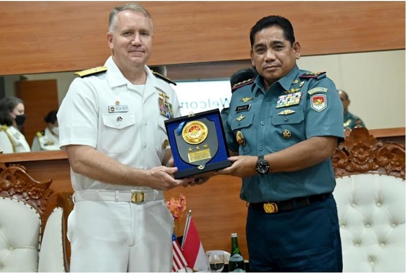 Sriwijayatoday.com Jakarta Panglima Komando Armada RI Laksamana Madya TNI A. Rasyid K. menerima kunjungan kehormatan Rear Admiral Richard Self, Commander Submarine Group Seven And Task Force 74 US Navy, Rabu 21/07/22, di Mako Koarmada RI, Jakarta.
