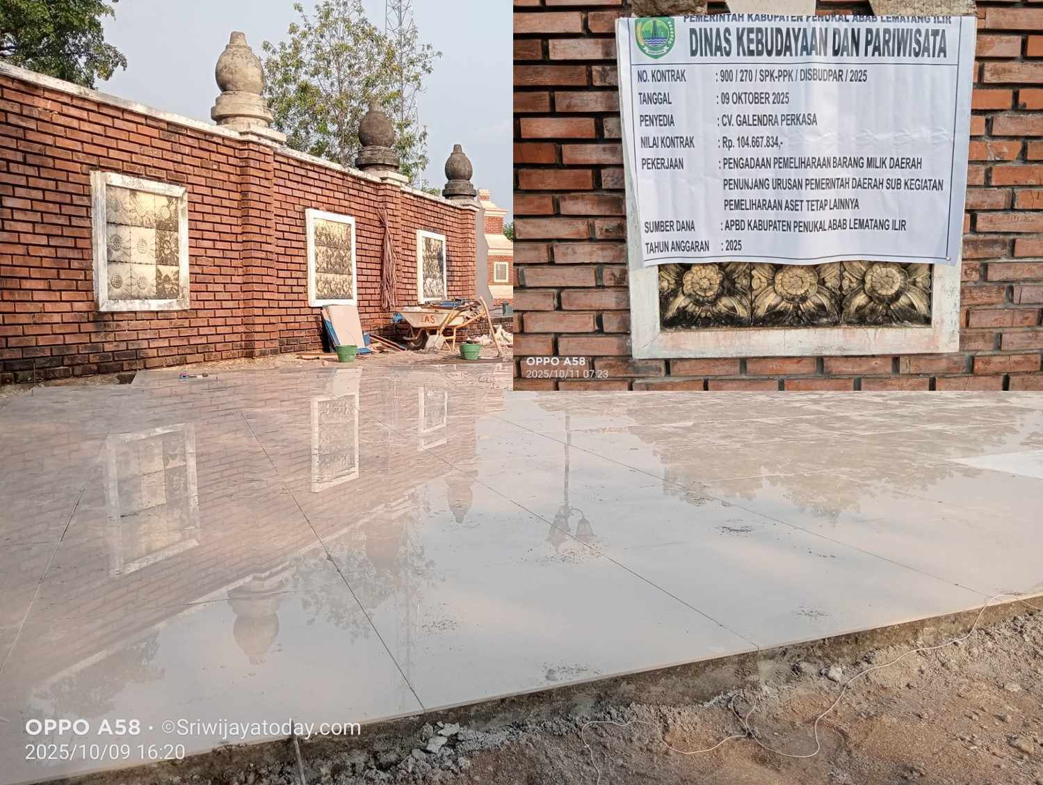 Dari papan informasi yang akhirnya dipasang, tercantum bahwa proyek tersebut berada di bawah Dinas Kebudayaan dan Pariwisata Kabupaten PALI dengan rincian sebagai berikut: