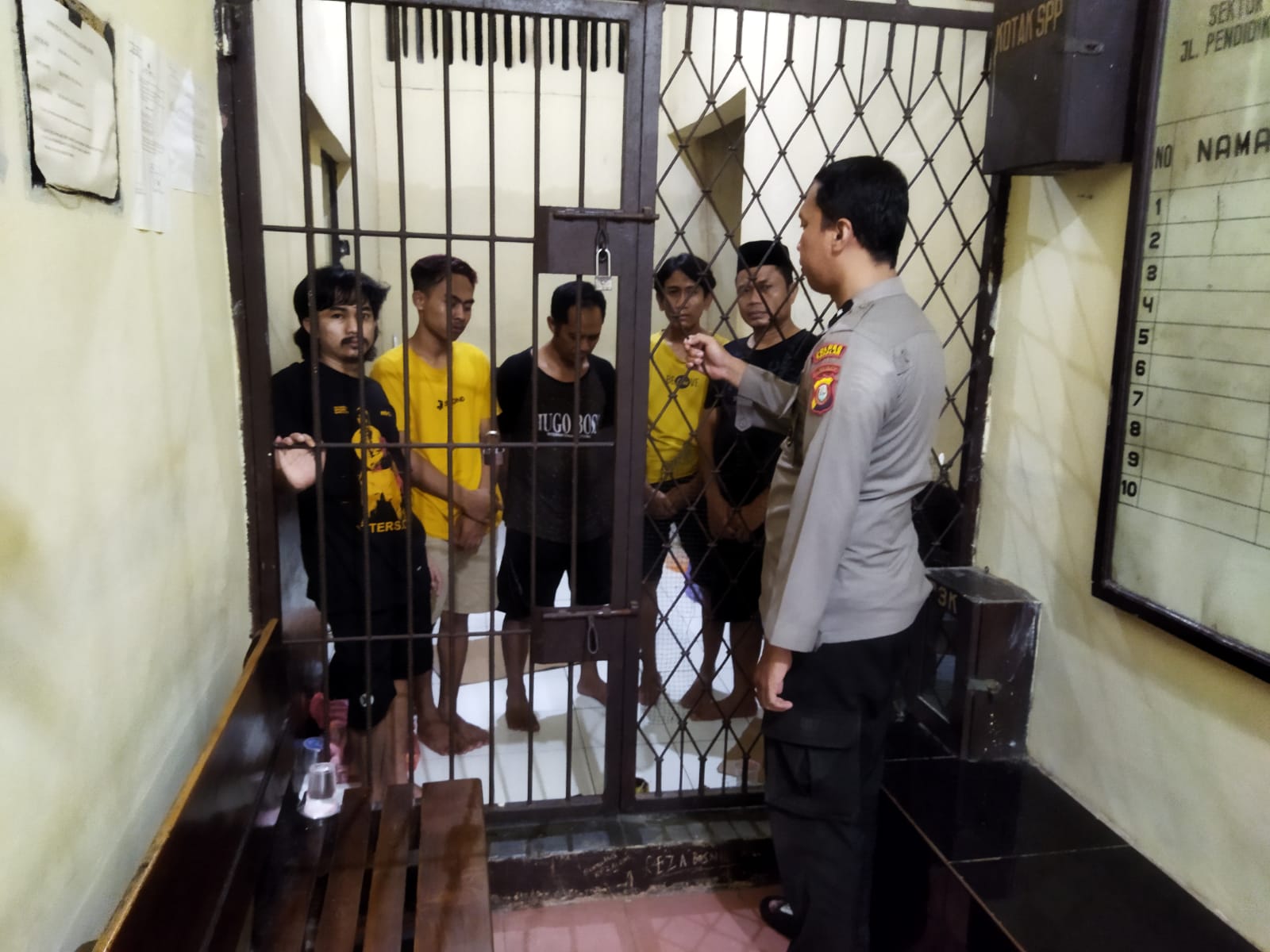Pengecekan ruang tahanan ini bertujuan untuk memastikan kondisi ruang tahanan, jumlah tahanan serta kondisi tahanan itu sendiri dalam keadaan baik, aman dan sehat, tutur Aipda Zulfadli.