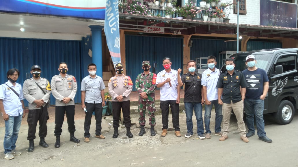 Foto Ketua PD GNPK-RI Muara Enim Bersama Kapolsek Semende,Babinsa Koramil 404-06 Semende Sekcam Semende darat laut Sekdes Pulaupanggung dan Ketua Ormas Komando Garuda Sakti dalam program mensosialisasikan PROKES COVID-19 serta berbagi masker dan takjil Jumat 30 April Di Desa Pulaupanggung kecamatan Semende Darat Laut Kabupaten MuaraEnim