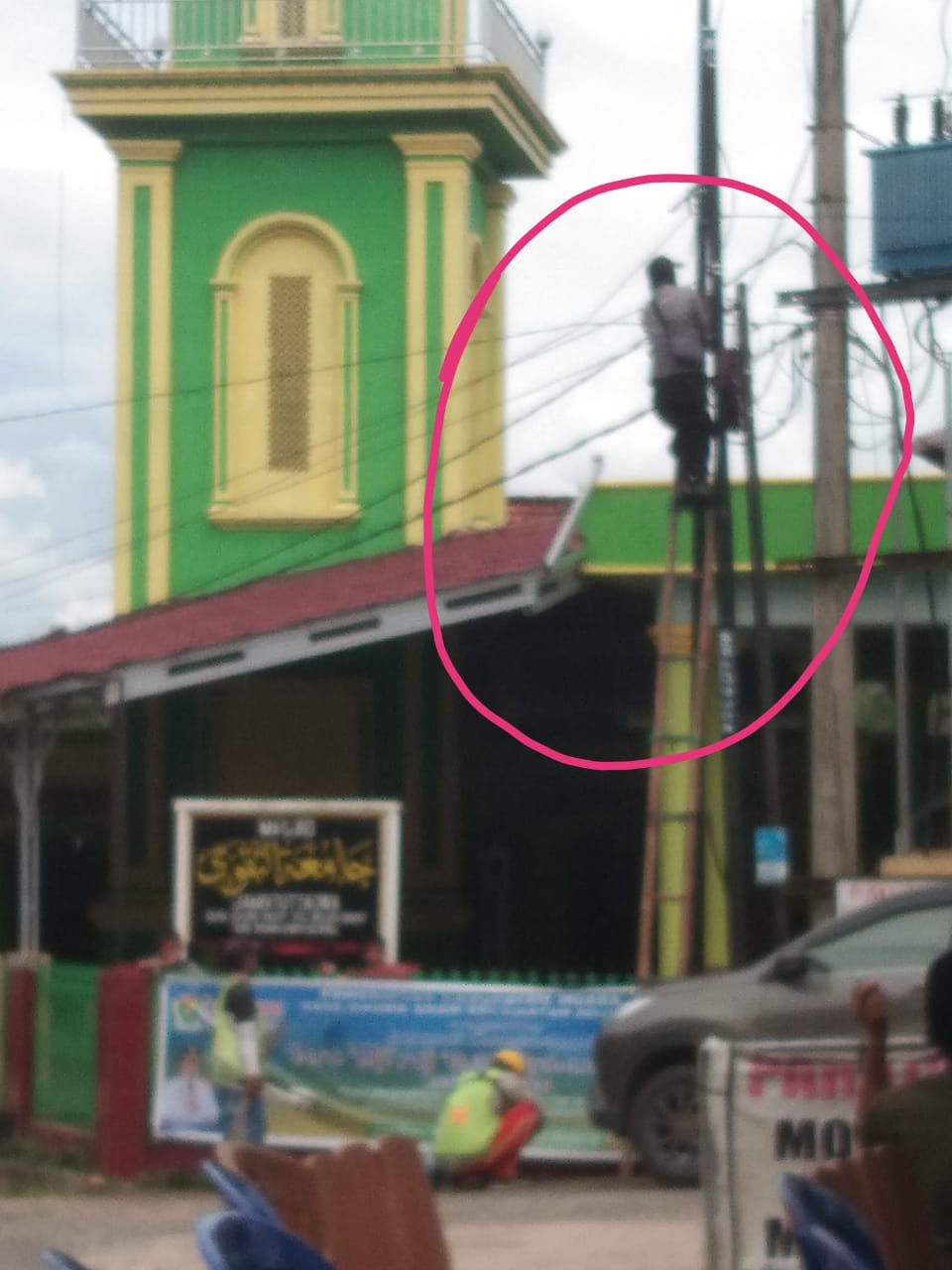 Beberapa hari lalu sudah dilakukan peneguran oleh warga setempat kepada pegawai proyek, terkait pemasangan tiang instalasi kabel optik udara yang dipasang terlalu dekat dengan tiang listrik milik PT. PLN.