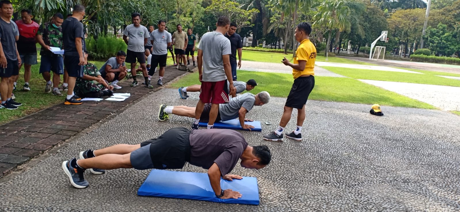 “Dalam pelaksanaan kegiatan kesamaptaan tersebut, personel terlebih dahulu dicek kesehatannya oleh tim kesehatan dari Polkesdim/Kesdam Cijantung untuk mengetahui tensi darah sebelum melaksanakan kegiatan samapta tersebut