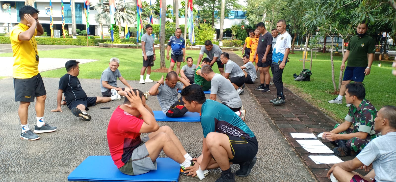 Sementara itu, Danlat Mayor Inf Ahmad Yuono menyampaikan mekanisme Giat Garjas Samapta yang digelar meliputi Samapta A dan B. Samapta A yakni lari selama 12 M dan tes kesegaran B meliputi Pull Up, Sit Up, Push Up selama 1 menit serta Shuttle Run (Lari angka delapan).